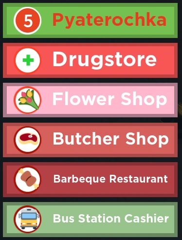 Продукты питания: приобретаются за счёт игровой валюты в магазине "Пятёрочка"