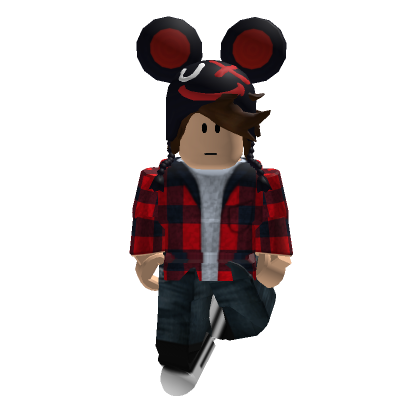 Он носит красную клетчатую рубашку, белую футболку и чёрные джинсы с белыми кроссовками.