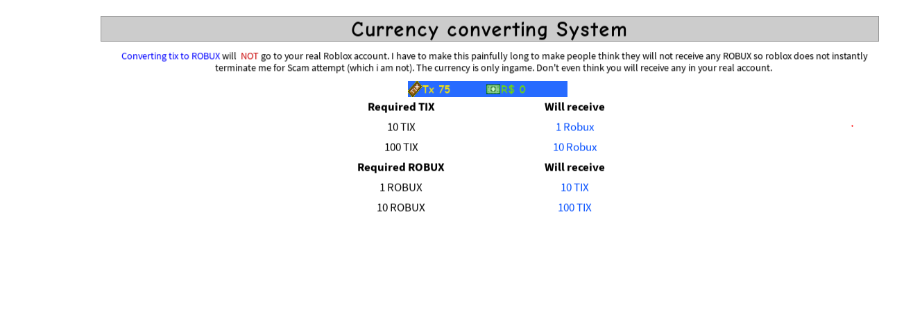 В игре есть фейковые Тикеты и Робаксы, работают они как в обычном Roblox 2007 года.