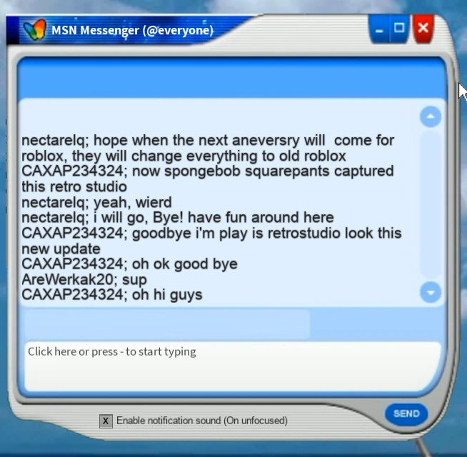 2007 roblox (very cool) (рус. Роблокс в 2007 (очень круто)) — плейс, в котором воссоздаётся Roblox лета 2007 года, а также MSN Messenger и Сапёр в Windows XP.