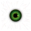 Гигантское глазное яблоко с радужкой изумрудного цвета и несколькими выделяющимися кровеносными сосудами на поверхности, которое полностью покрывает голову персонажа.