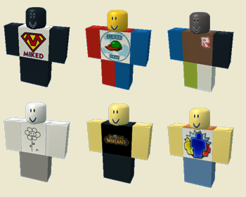 'T-Shirt (рус. Футболка) это картинка на туловище игрока, которая показывается в игре и на аватаре. Они похожи на Shirts, но текстура находится только на туловище. Абсолютно все могут их создавать, но только игроки с Премиумом могут их продавать.