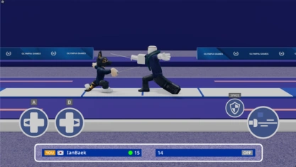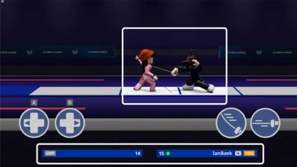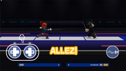 Players fight using thin blades, and can move left or right within the strip. The feint button can be pressed to attack the opponent while the parry button can be pressed to block an incoming attack. Each hit scores 1 point, the first to 15 points wins.