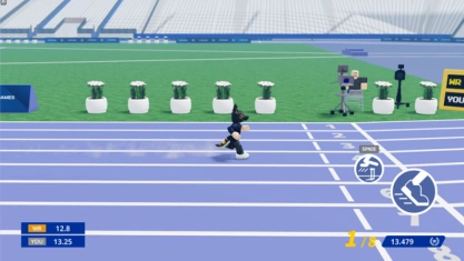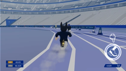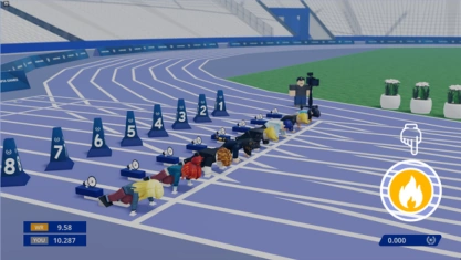 Players race in lanes on an athletic track. When the starting signal sounds, players can press the boost button to begin sprinting. Pressing it before the boost signal results in a foul. While sprinting, players rapidly press the sprint button to maintain their speed.