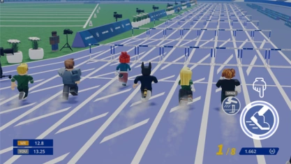 Players race in lanes on an athletic track, with evenly spaced hurdles. When the starting signal sounds, players can press the boost button to begin sprinting. Pressing it before the boost signal results in a foul. While sprinting, players rapidly press the sprint button to maintain their speed. Players must jump over the hurdles as they approach them.