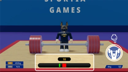 Players lift barbells in the 'snatch' and 'clean and jerk' styles. Players can choose the weight of their barbell, which determines the difficulty and points they earn. The gauge needs to be pressed at the right time when the green marker is in the red area. Players then rapidly press buttons to balance the left and right numbers of the yellow bar.