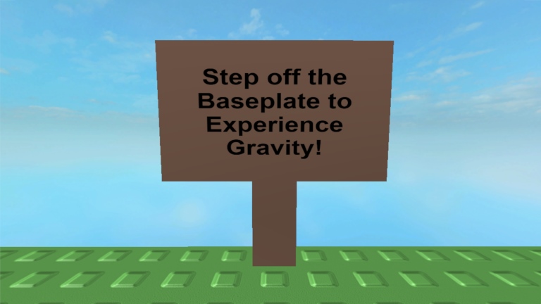 Upon joining, users spawn on a small, green studded baseplate. They have the ability to walk around, jump around, and fall off the baseplate. Once a player falls off the baseplate, they are teleported back to the baseplate and be able to jump off it again.