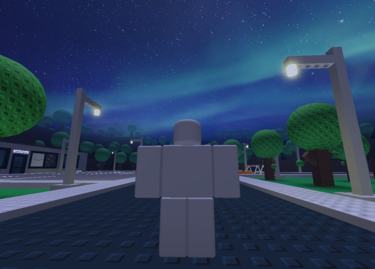After getting the "Get a snack at 4 AM" ending at least once and/or remembering five notes scattered around the game (which is optional), rejoin the game. You will spawn in the Void, and by interacting with Dummy, they will talk about there being an error because of information overload and that money and items will not work, except for the orb in the store. The player will then teleported outside the house. Go to the store and steal the orb. An “error” regarding to the Cashier missing and failing to execute the Shoplifting Ending will appear. Rejoin the game and interact with Dummy. Dummy will ask the player to throw the orb away before being teleported to the store. Throw the orb into the magic trash can. The player will see another "error" regarding to the player now being corrupted and failing to throw away the orb. Rejoin the game again and the player will see the game is corrupted. Go to the store and interact with Dummy. After dialogue plays, revealing the player to be in the Cashier's point of view, a textbox will appear, telling them to follow the road. After traversing the road while the Cashier and Dummy have a dialogue, an obby needs to be completed. At the end, Kyu, a cube similar to the orb, will appear. Kyu is looking for the orb, who's name is revealed to be Orby. Kyu will explain how they are an entity who fixes anomalies in worlds (games), and that they detected an anomaly in this game, which is why they are here. They noticed that this game can't even handle one player without slowly breaking. The only reason it did not break immediately is because of Orby. Orby and Kyu used to be partners, but Orby got trapped in this world. Kyu did not notice until Orby started to corrupt the world entirely, causing giant glitches and bugs. Dummy asks what is going to happen to the world, if the only thing keeping it together goes away. Kyu proposes to replace the data storage function that Orby was doing with Cashier. Depending on if the player remembered the five notes or not, either Cashier or Dummy will take Orby's place.