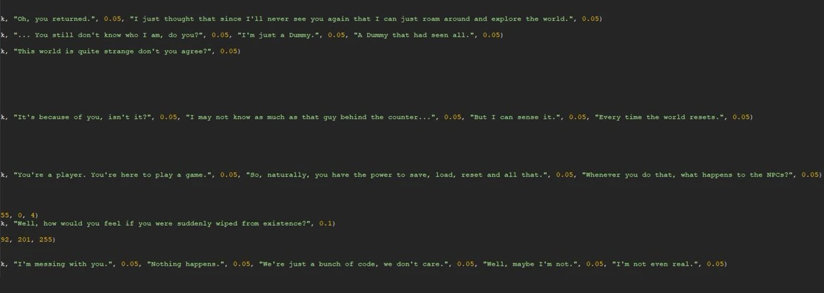 Stixxal's Twitter comment: to kill you or something like that. strangely, a bit of this ending is still in the game but goes unused. the first bit of dialog is still here! |