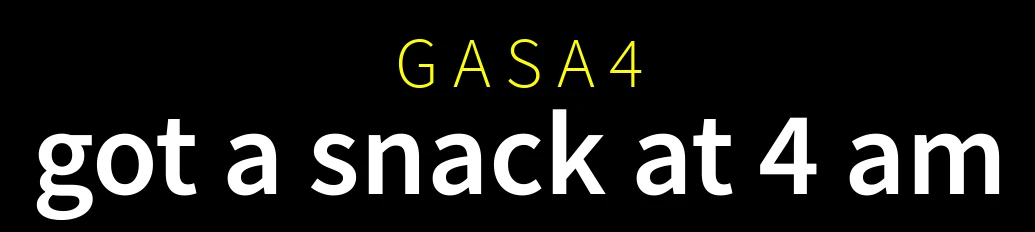 - Sometimes, the title screen can change to “get a snack at a late hour”, although the abbreviation above will still say “GASA4”.