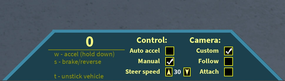 There were 2 tools used to control the vehicles: one for mouse controls and another for arrow key controls.