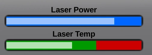 As the player uses the laser, it will build up heat as seen in the bottom left GUI. If you stop using the laser, it will allow the heat buildup to decrease. Should the heat enter the red, it will take longer to cool down until it lowers back into the green. If you overheat the laser, you won't be able to use it until the heat lowers back into the green on the bar. You can fire the laser for 33 seconds before it overheats. Laser power is weaker while you are on the arena wall. Once you join the game by entering the field, your laser power will grow.