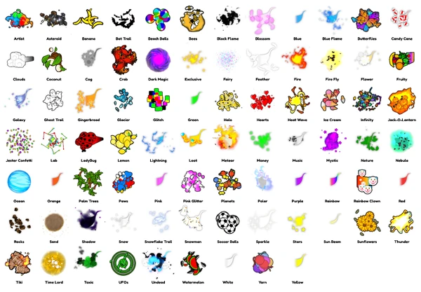 Trails Trails are particle effects which follow the player's movement. There are 81 trails to collect in Socks Minigames.