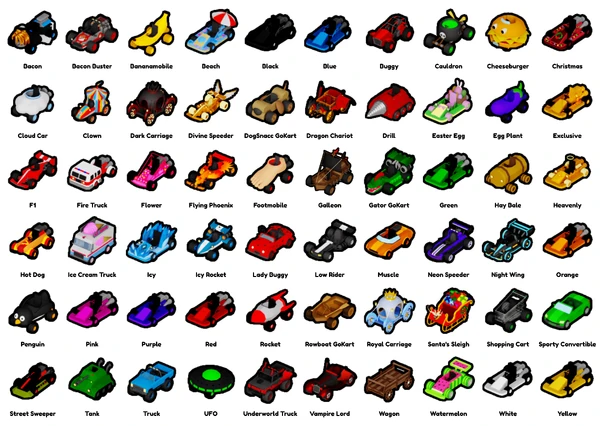 Cars Cars are vehicles replacing the default car in vehicle-based minigames. There are 60 cars to collect in Socks Minigames.