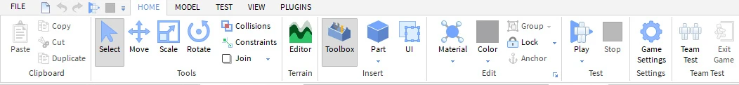 - The Plugins tab allows you to use Plugins, which are downloadable tools to help with building and scripting, sort of like mods in other games.