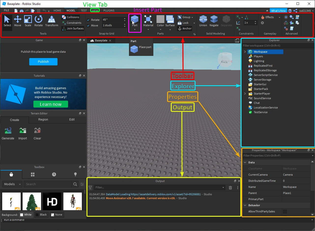 - The Toolbox opens a window that allows you to access free models, which are basically models created by other players that you are free to insert into your game. However, avoid using this feature excessively, and watch out for malicious codes inside the models that can ruin your game.