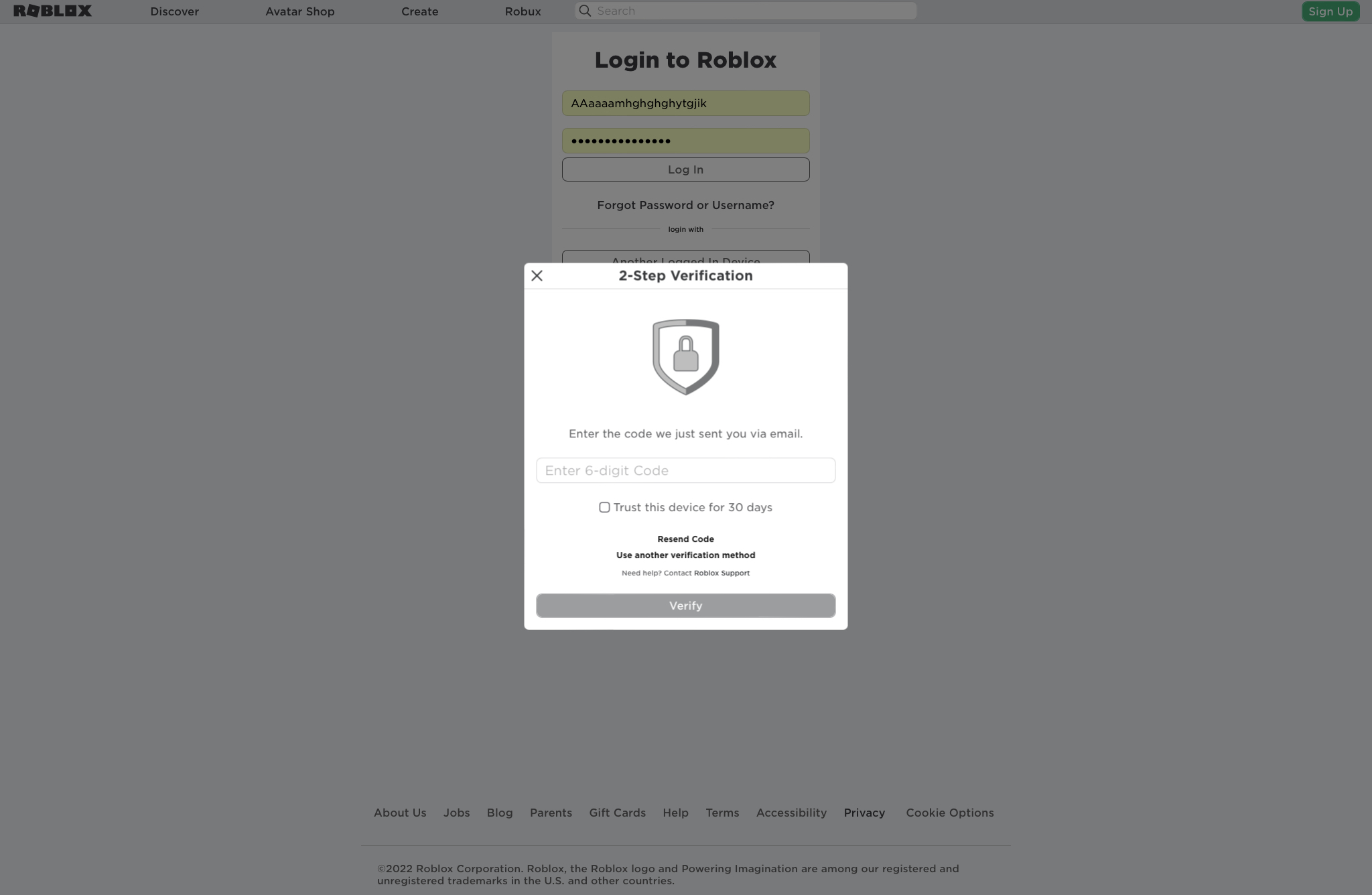 With email verification enabled, an email will be sent containing the verification code (eg 123 456) when logging in. To set one up, first click your email and Roblox password. Next, follow all prompts. It is a good idea to get backup codes (eg 1e3 4b6 7a9) in event your email is unavailable. Email verification is not recommended over other two step verification options, but is better than nothing at all.