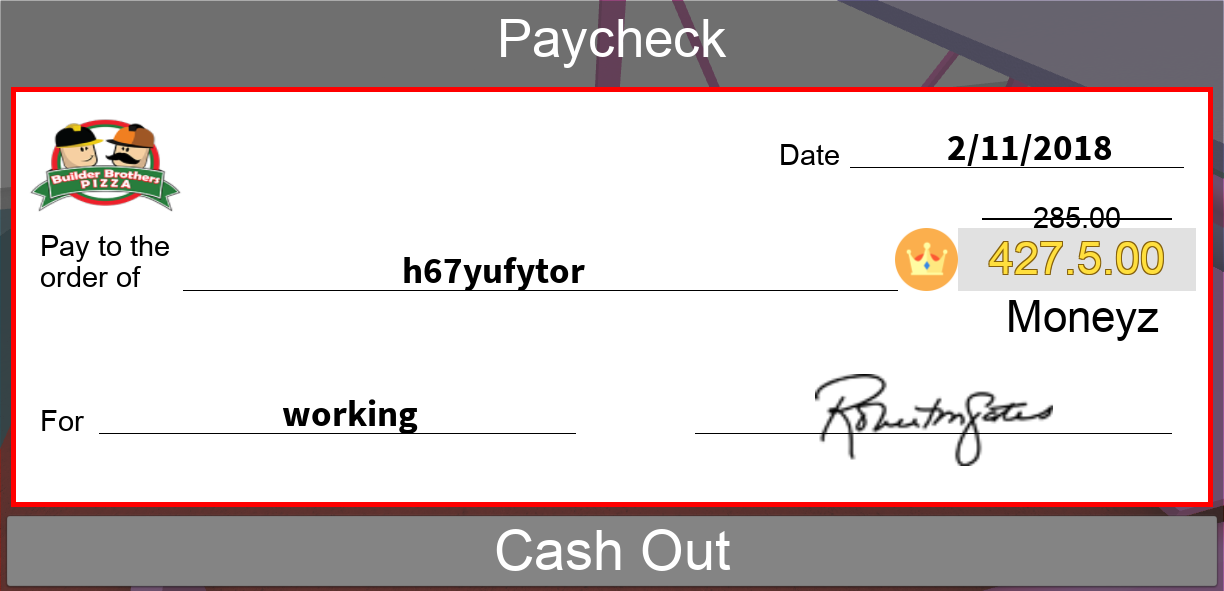 一张工资发票 普通玩家为285元。 VIP玩家则为1.5倍(427.5元)